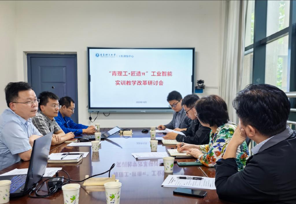 为持续推动人工智能赋能本科实践教学模式改革,10月11日,威廉希尔williamhill中文(工程训练中心)组织召开了“青理工·匠造π”工业智能实训教学改革研讨会。教务处副处长杨勇、朱晓阳,资产与实验室管理处副处长范若联,信息化建设与管理处副处长李金海应邀到会指导。会议由威廉希尔williamhill中文副院长杨发展主持,项目组主要成员参会。