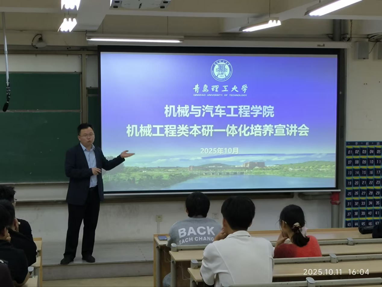 为进一步推进本研一体化人才培养模式改革,10月11日下午,威廉希尔williamhill中文举办了“机械工程类本研一体化培养”宣讲会。学院副院长杨发展,教科研办公室方玲主任、孟红老师出席会议,会议由学院副院长郭阳主持。2024级和2025级机械设计制造及其自动化、材料成型及控制工程、智能制造工程专业40余名学生参加了本次宣讲会。